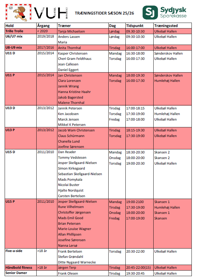 Klik på billedet til venstre, for at se det fulde overblik over træningstiderne for sæson 2025/2026